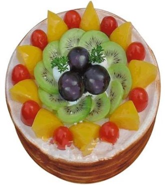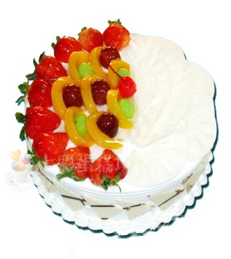 • 8寸鮮奶水果蛋糕,中心放各色時令水果,扇形巧克力插片