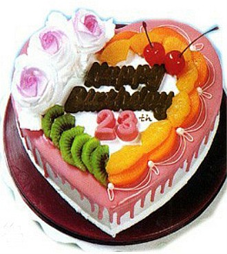 • 8寸心形水果鮮奶蛋糕,3朵奶油玫瑰花及時令水果。