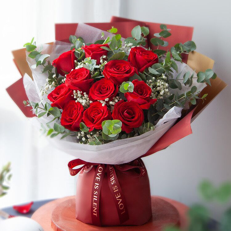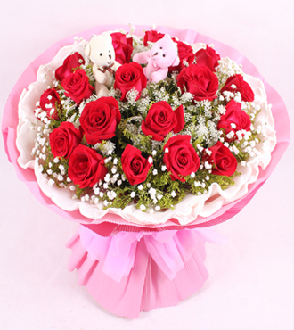 • 紅玫瑰11枝,滿天星、綠葉豐滿+8寸奶油蛋糕
